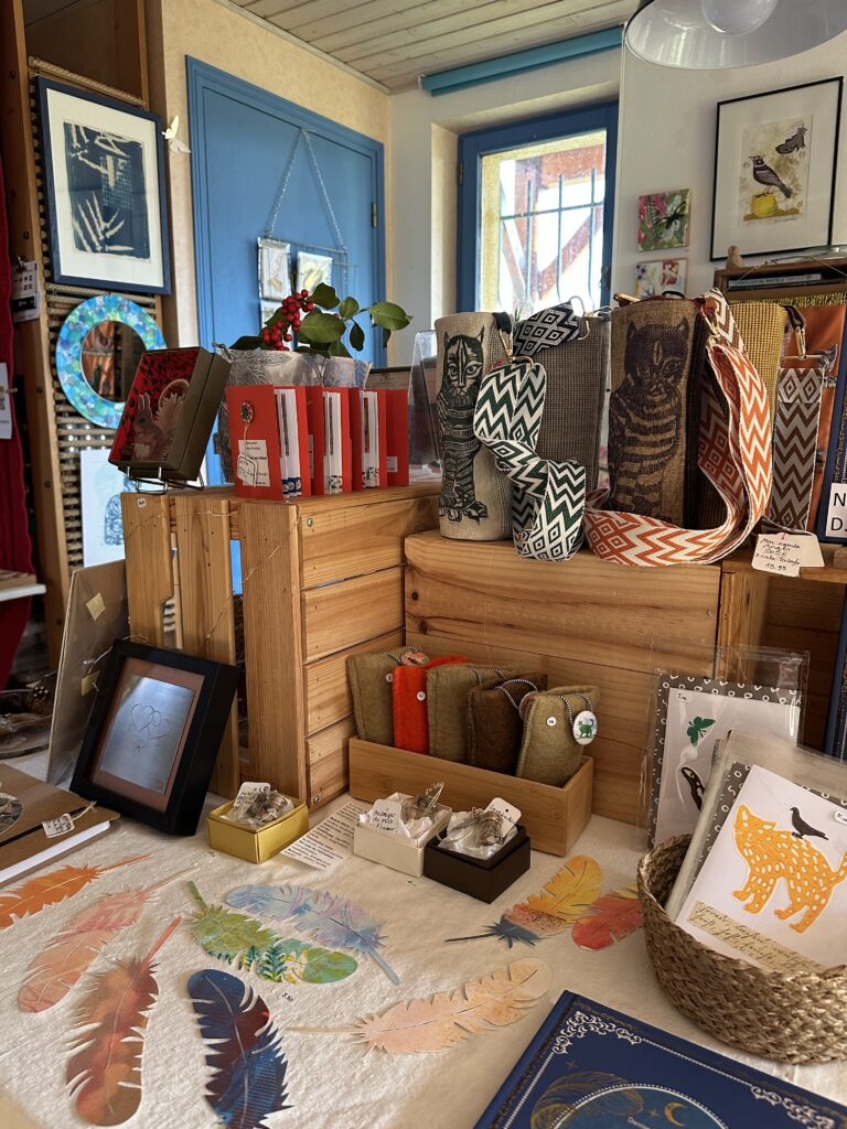 Mon atelier s’est habillé en mode boutique dans une atmosphère qui fleure bon les épices de Noël. Je vous accueille toutes les après-midi de 14h à 19h jusqu’à dimanche 21 décembre inclus. Créations en pièces uniques, faites à la main. Linogravure, estampes figuratives et abstraites imprimées à la main, papier et textile illustrés, carterie originale, albums customisés… Tout un monde à découvrir !