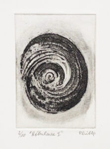 Alain Philip, graveur, établi à Champagney (Haute-Saône), expose ses estampes dans mon atelier. Impressions sur papier Magnani incisioni et Fabriano, 260 g. Thèmes inspirés par le mouvement (Intuitions), les interactions sociales (Entrelacs), l’univers (Nébuleuse), le son (Sonorités). Gravés à partir des croquis d’Alain, selon les techniques de taille douce, dont burin (Entrelacs et Sonorités), aquatinte (Nébuleuse) et un mixage de burin et d’aquatinte (Intuitions)