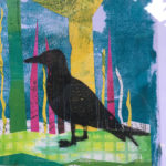 « Sur le rivage » collage de papiers imprimés à la main + sur-impression à la main en noir – Pièce unique – acryliques Golden open / VENDU
